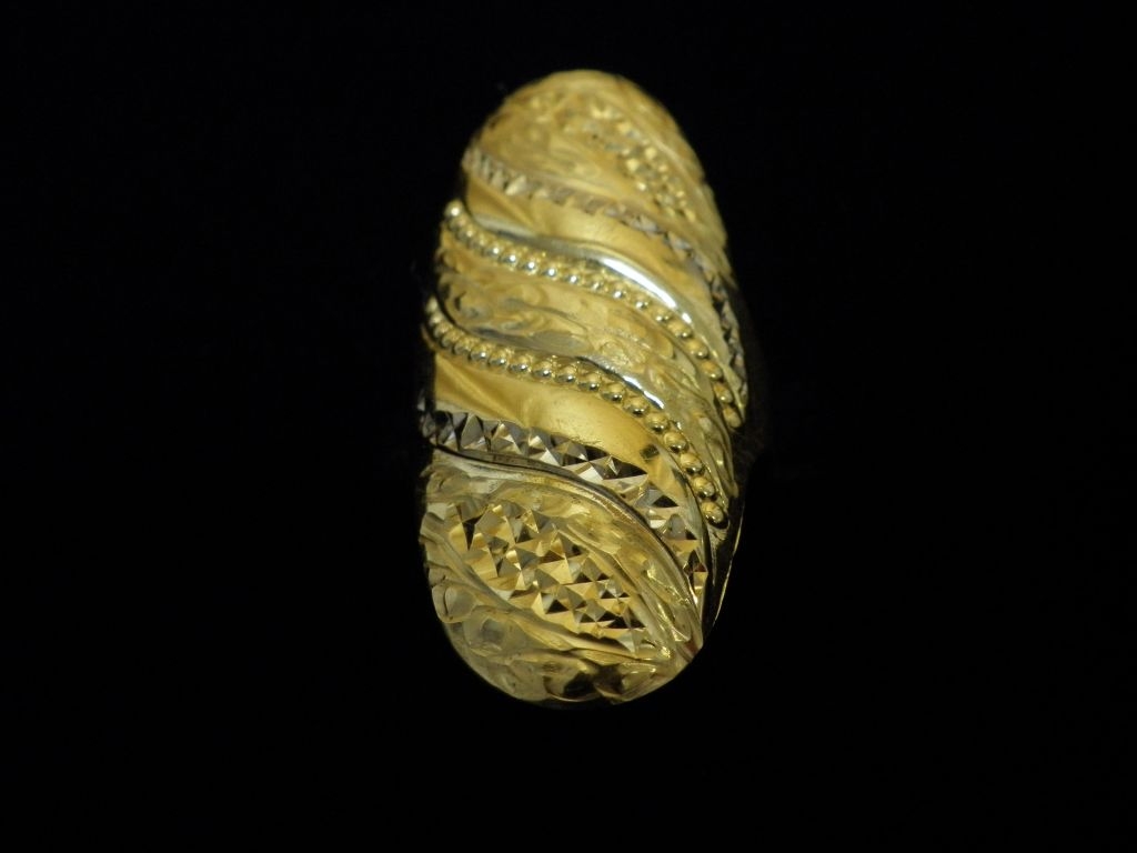 Златен пръстен с гравирано бяло и жълто злато,олекотен