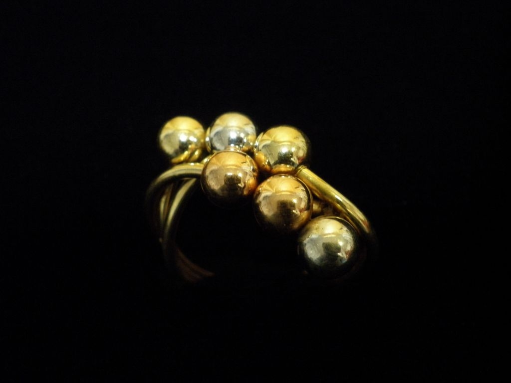 Златен пръстен с топчета от бяло,жълто и червено злато