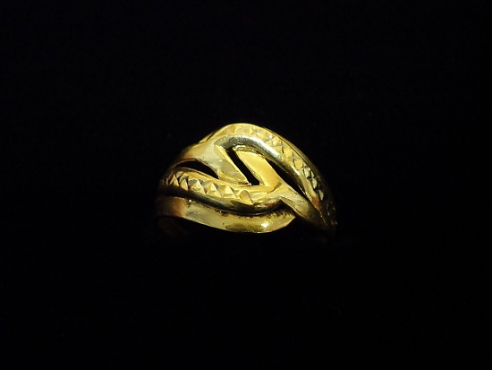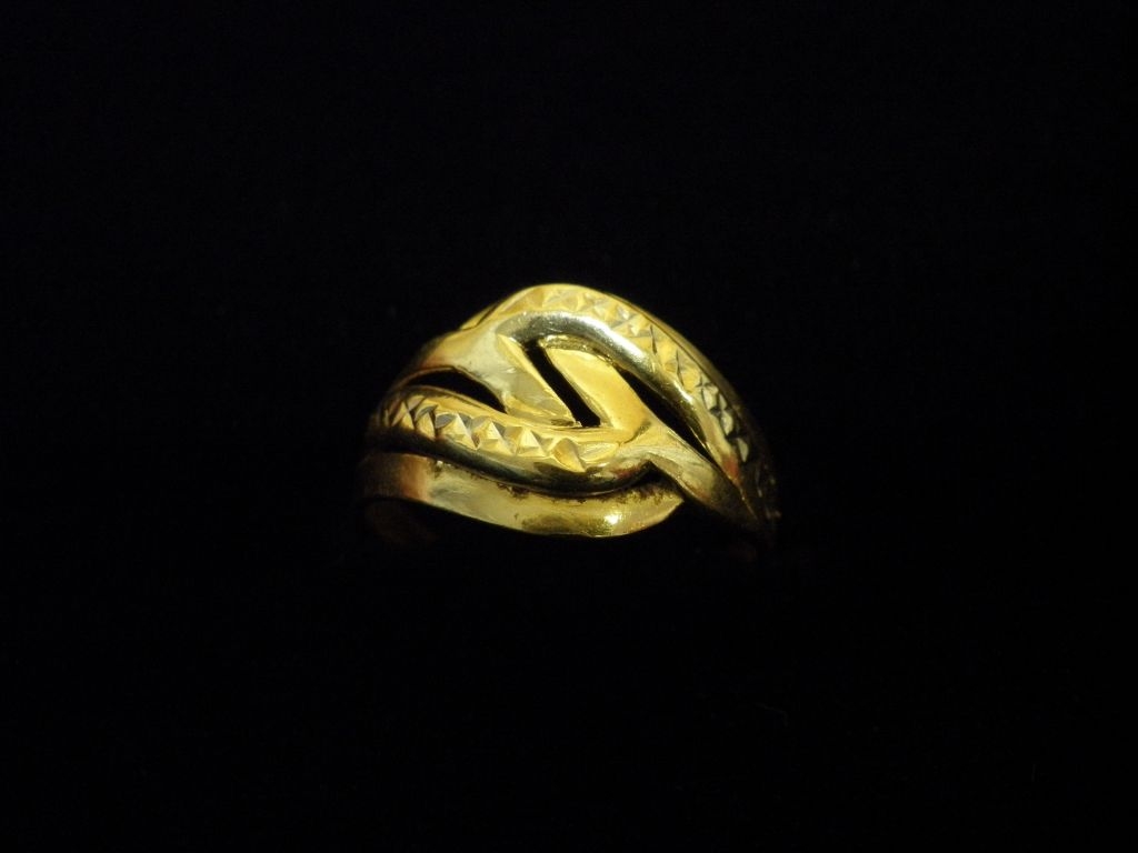 Златен пръстен с гравирано бяло и жълто злато,олекотен