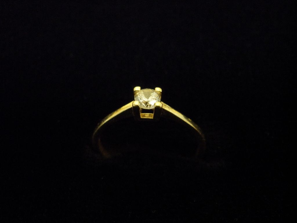 Златен пръстен годежен с бял камък