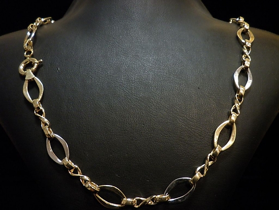 Златен синджир с елементи от бяло и жълто злато,олекотен