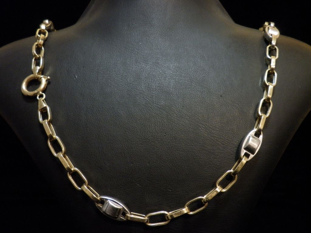 Златен синджир с елементи от бяло и жълто злато,олекотен
