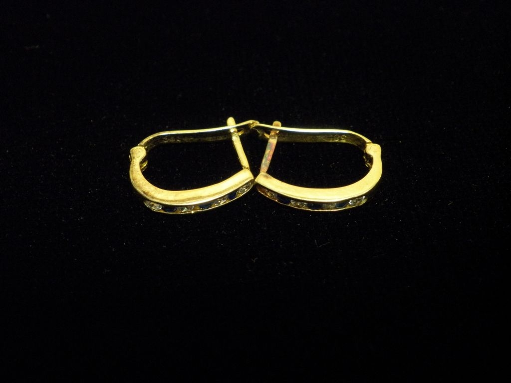 Златни детски обеци с бели и сини камъни,английско закопчаване