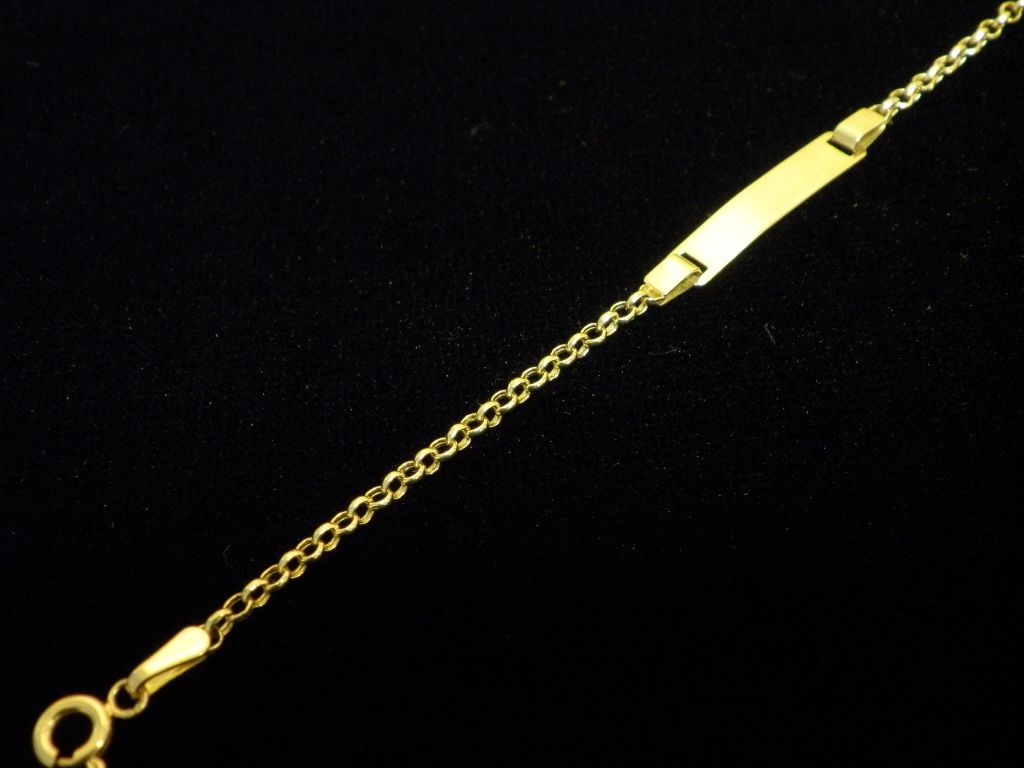 Златна детска гривна с плочка