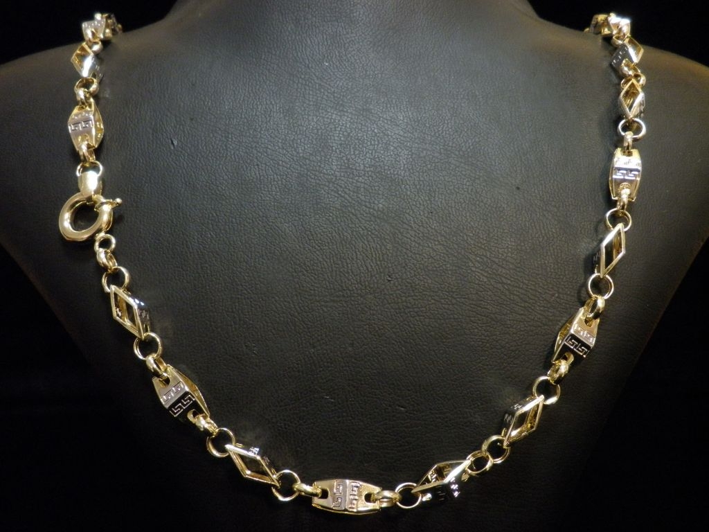Златен синджир с елементи Версаче от бяло и жълто злато,олекотен