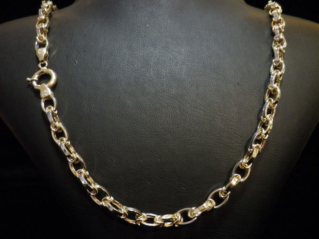 Златен синджир с елементи от бяло и жълто злато,олекотен