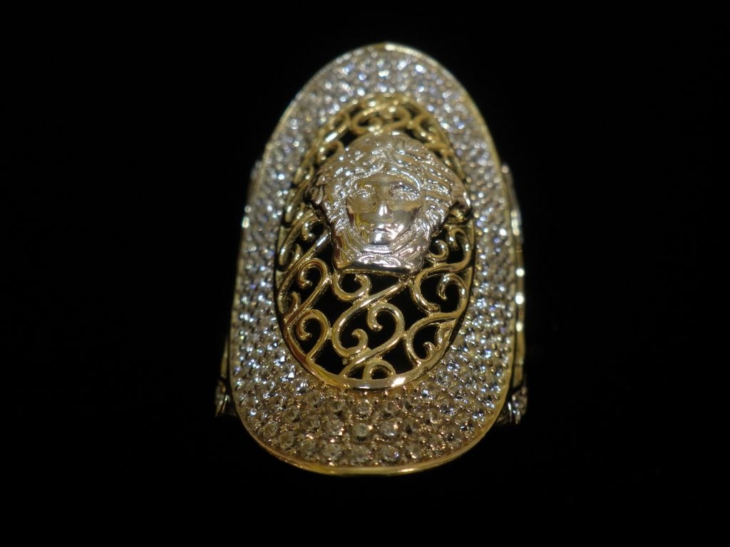 Златен дамски пръстен Версаче с орнаменти и бели камъчета